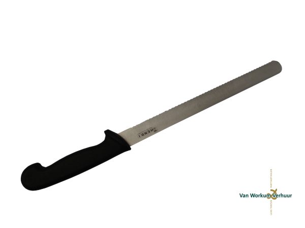 Met het broodmes van Van Workum Verhuur, kunt u gemakkelijk brood snijden. Dit kan wellicht handig zijn met bijvoorbeeld een catering.