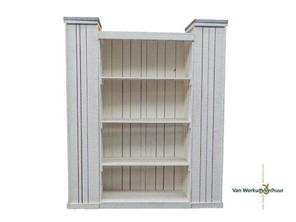De achterkast Manhattan is een whitewash gebeitst meubilair, dit is een van de grotere meubilair trends van de laatste jaren. Met de achterkast “Manhattan” kunt u een unieke sfeer creëren tijdens bijvoorbeeld een tuinfeest. Let op: de zuilen getoond op de afbeelding dienen apart gehuurd te worden!